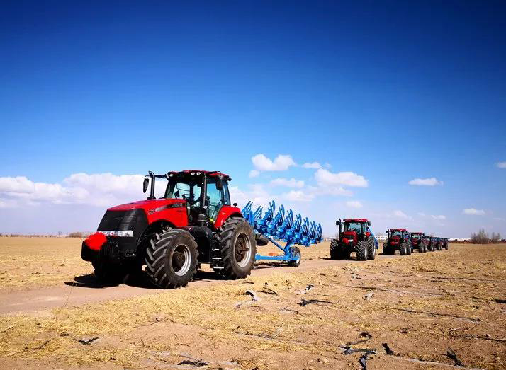 民族品牌的驕傲:十臺(tái)凱斯拖拉機(jī)配套十架龍豐犁